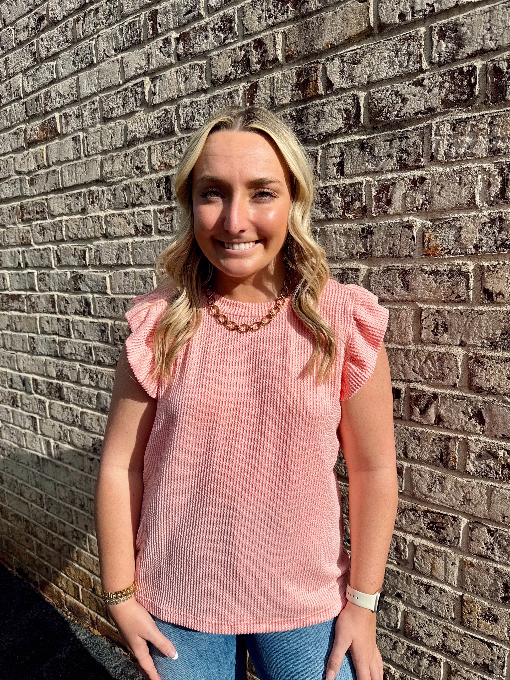 Coral Ribbed Flutter Sleeve Top